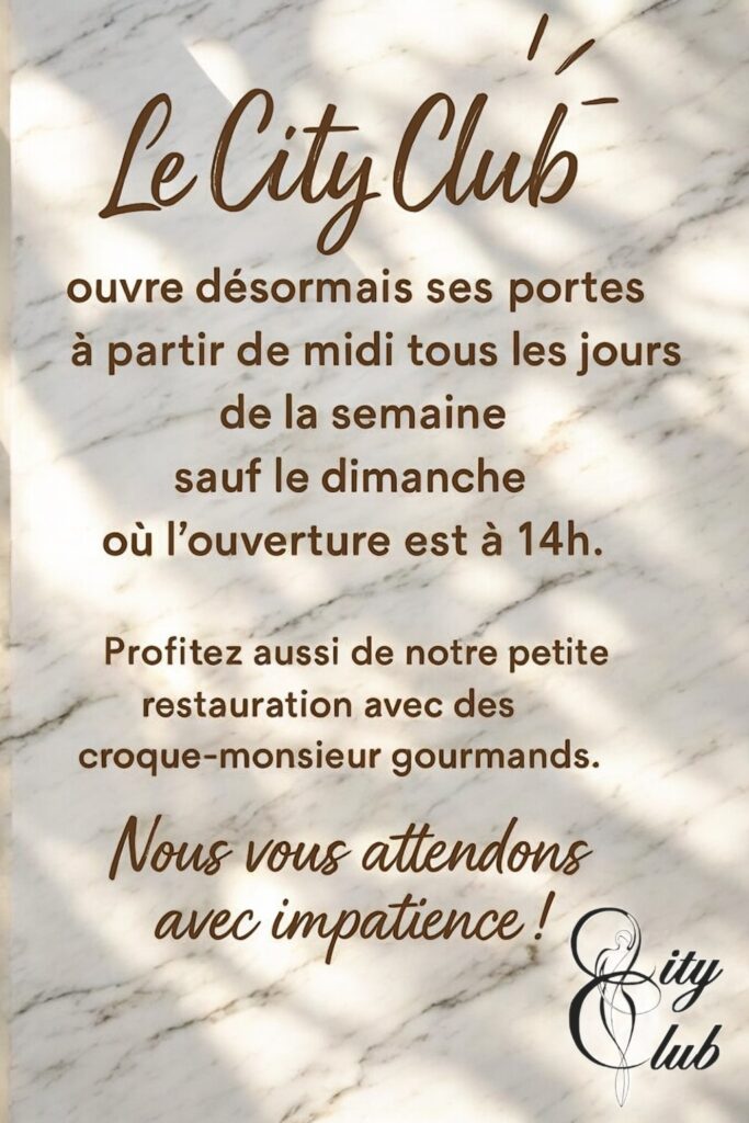 NOUVEAU HORAIRE DU CITY CLUB A PARTIR DE DECEMBRE 2025